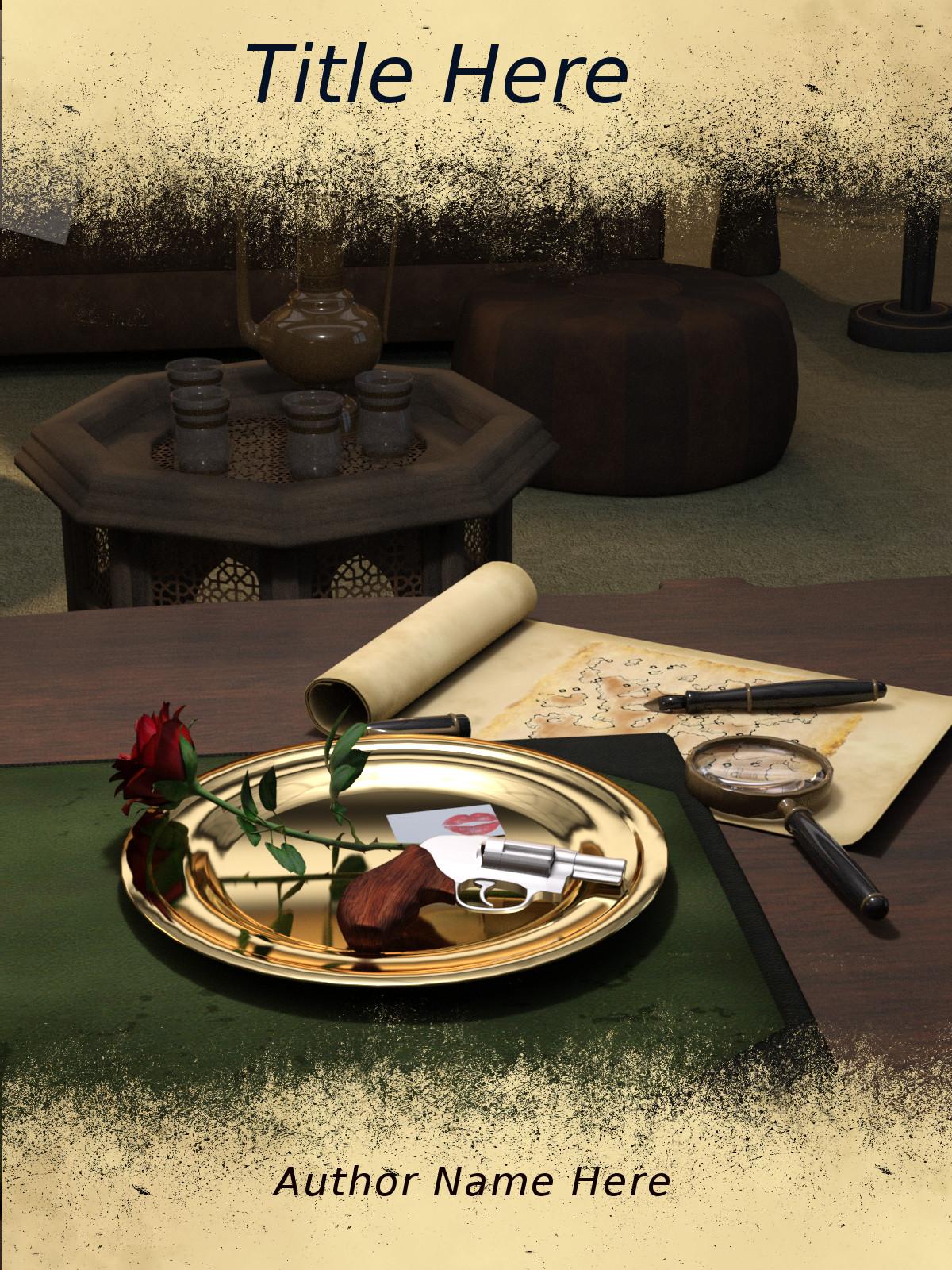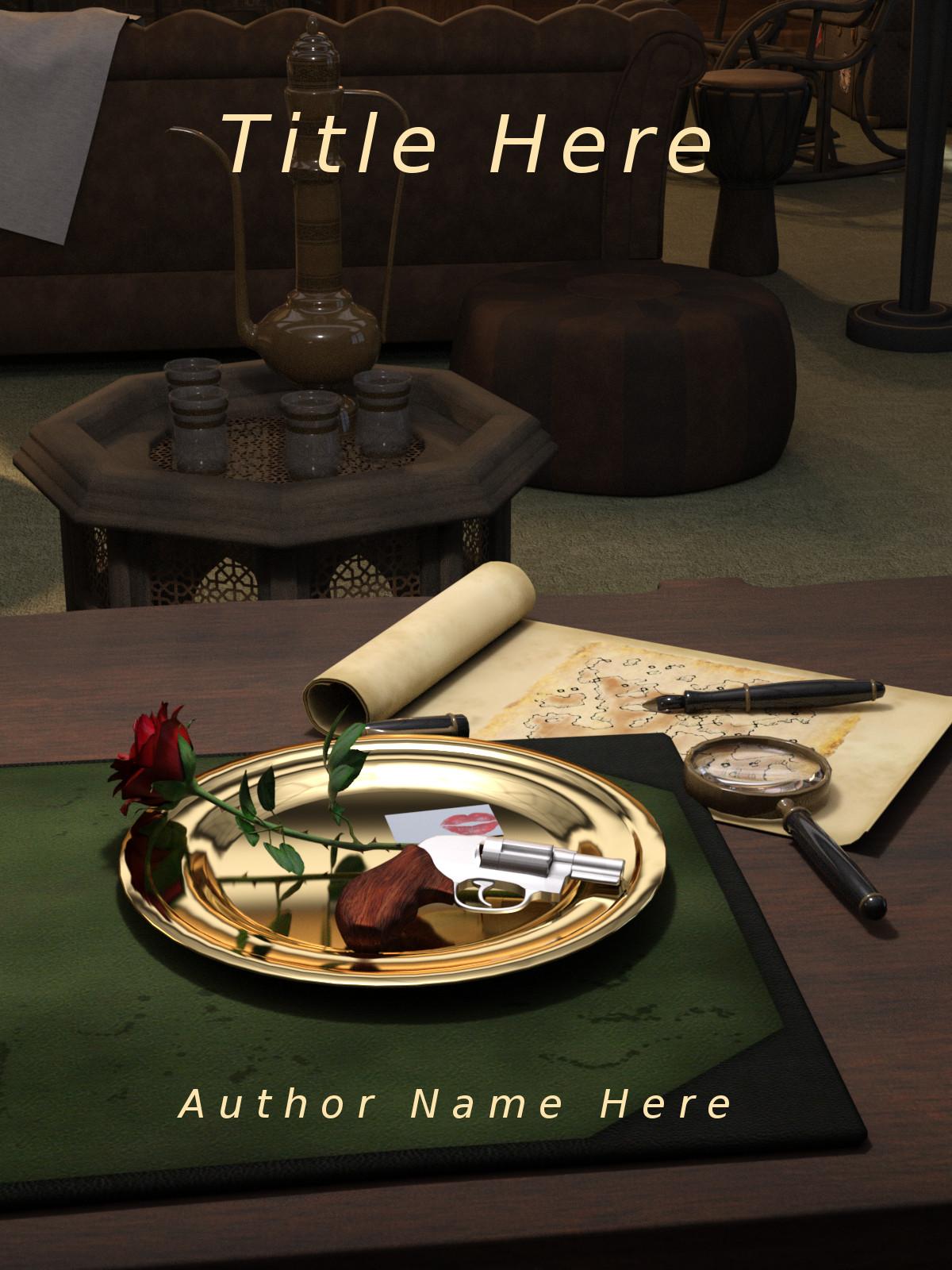 So, I've been playing around with this book cover. Wanted to get some opinions. Sample author and title text is just to view placement. I don't have to do typography, just give suggested placement for text on the cover. I have one more rendering which is just a close-up of the desk. Not sure if I like it as much as I like the room view, but I thought I would let it render out and play around with it and see how it turns out.