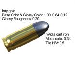 Here's one from an old set for M3. The one mjc posted will work well, too. This one has two surfaces, and I've applied stock Iray shaders to them, and adjusted a few of the settings. The shell of a bullet is copper, but there isn't a copper metal shader, so I used gold. Taking a bit of artistic license with the gleam of the metal, I compensated a bit by darkening the color and roughing up the surface very slightly.