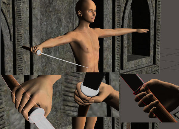 fingers and thumb around the handgrip, and then adjust the x/y/z rotations of the hand as desired.