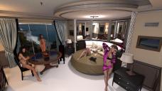 • Here is one I was working on, testing out the lighting and shaders... I moved out from it to test out another scene, so yea.. it's rough, and I forgot I renamed this one trying to do lighting tests... as mentioned above this is one that was giving me the blue tint on the ceiling, so I turned down the IBL light.. which made it darker outside, and a little brighter inside.. as scene by the chick on the bed... like she was getting over exposed..