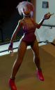 Old ShareCG freebies by Sixus1 (HER and her stuff) and 3-d-c (the SF corridor/room series). There are four polys representing 4 light sources in the room model; they were assigned to the same surface but I separated them with the geometry editor and used a different light colour in each. The backlight comes from an invisible plane ("phantom" on).