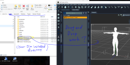 to confrim it,, if you drug and drop, from your DIM installed directory,, genesis3female.duf (from your PC file exploler) it work?