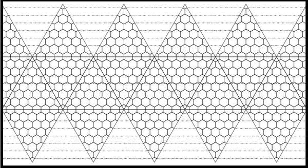 The Traveller Role playing game took the soccer ball idea and expanded on it. They recombined and subdivided the hexagons & pentagons to create many more hexagons and make the pentagons much smaller. Here is a picture of that pattern projected onto an icosahedron and unfolded.