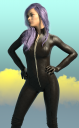 G3F with Genesis Supersuit and G2F Catrina with some G3 values to the skin and Sapphire hair on both. I adore that hair, and will be seeing if I can copy the qualities that make it work onto other hair.