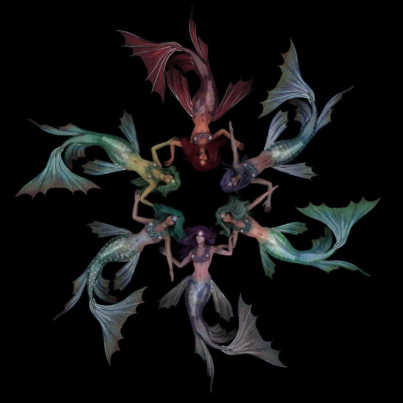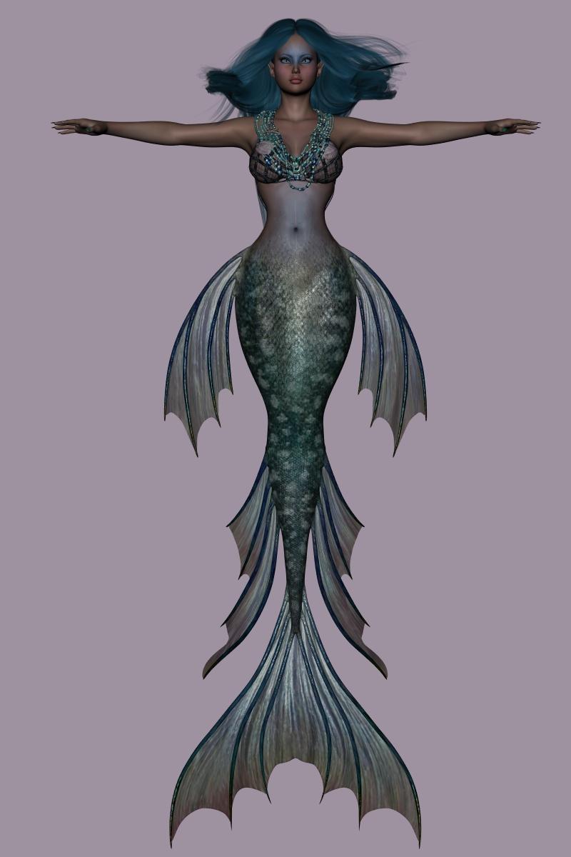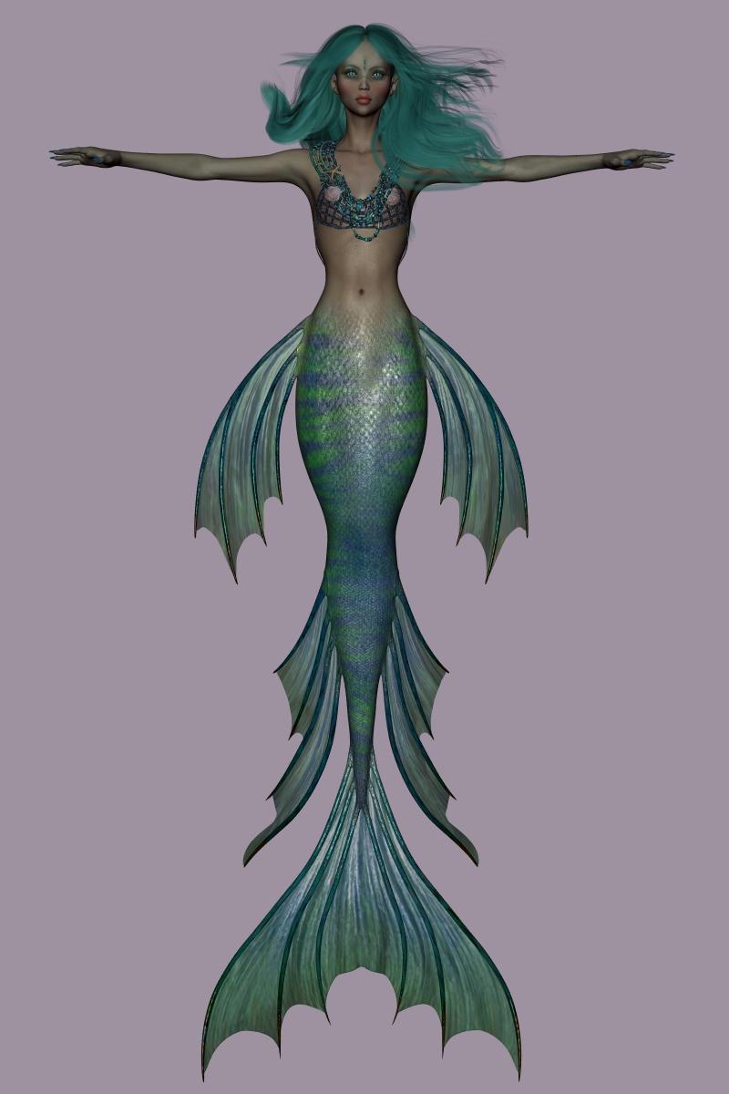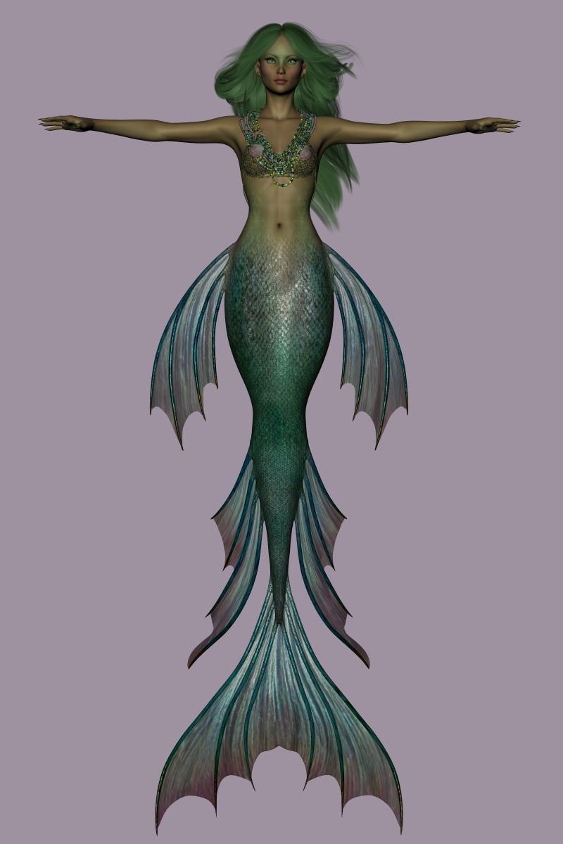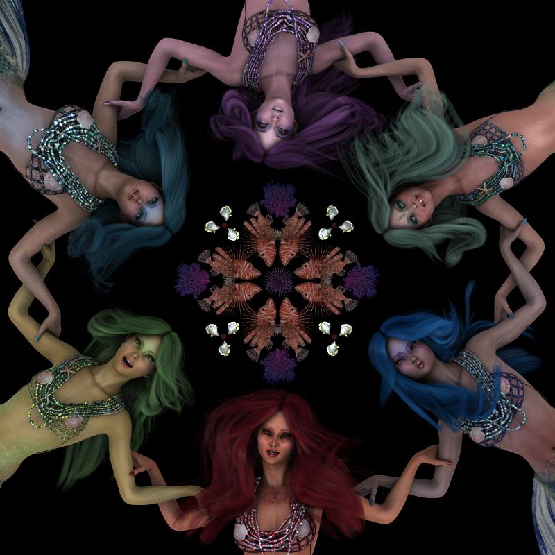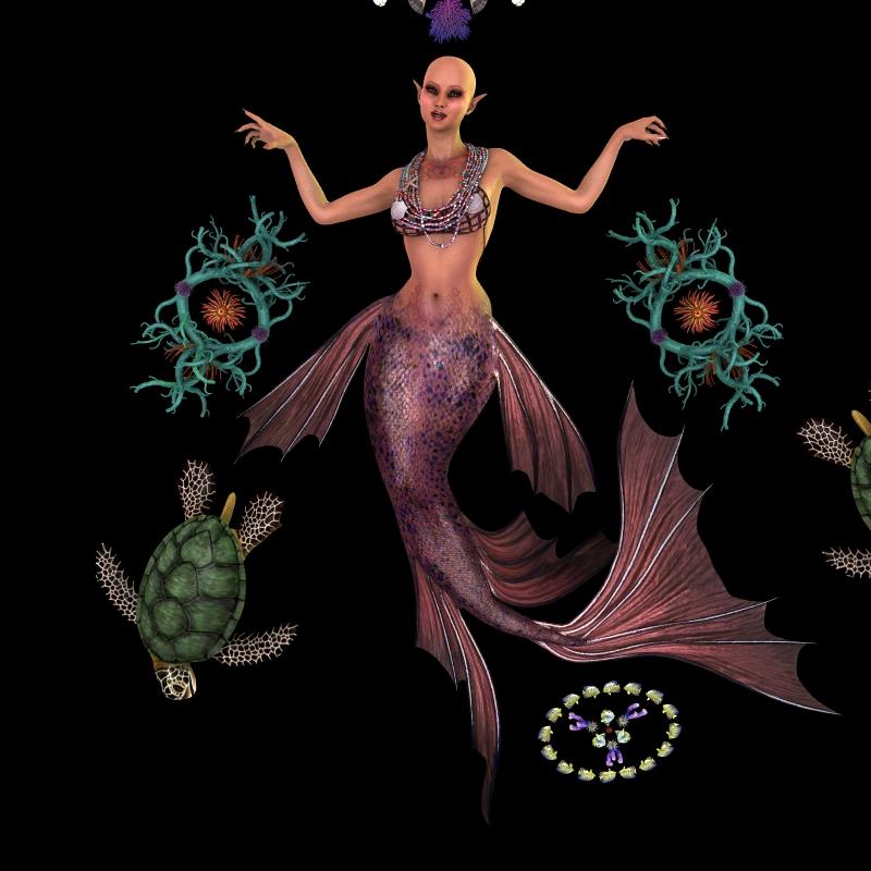 The first thing I did was create the mermaid characters. I completed each one including her hair pose. Only the red and blue hair textures that came with Christina Hair. The rest are blond with changes to the diffuse. I also played around with the diffuse to change the skin tone slightly to match the tail color. I retextured the necklaces using Gemologica.