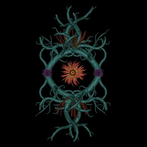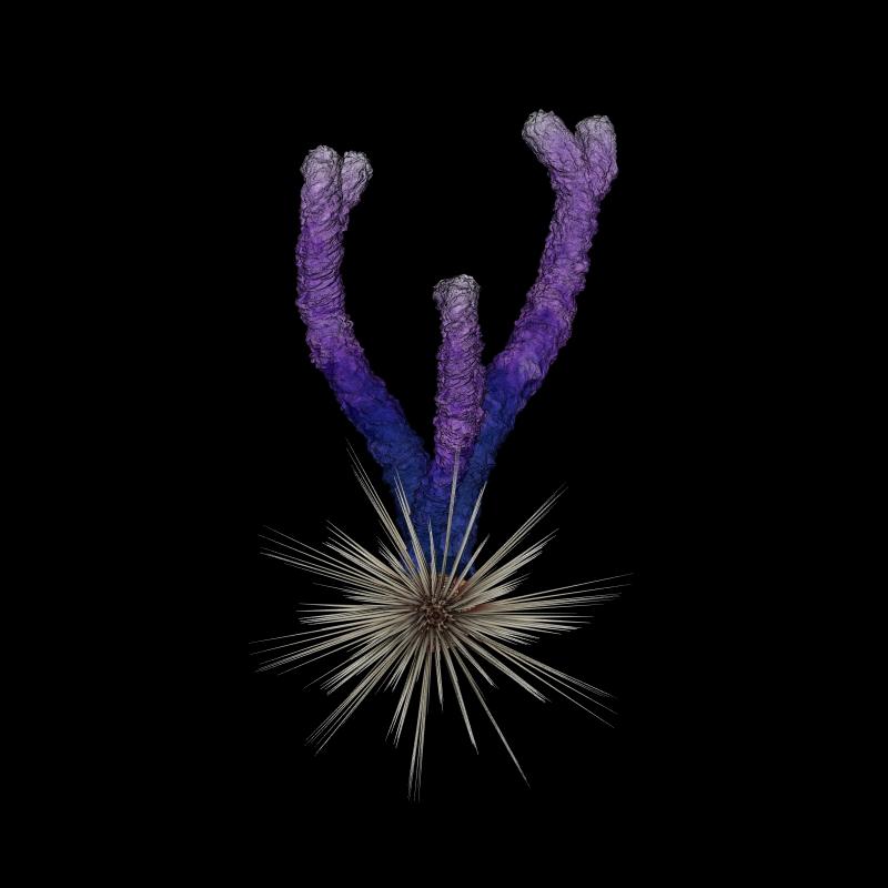 Here's the next design piece: Blue Coral. There are 4 coral pieces here, with the little purple urchins to cover the seams. Again, it was parented to the anemone in the center so I could rotate it on that axis.