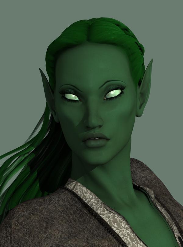 I created a green elf using Genesis a while back, and I wanted to update it. I tried Dark Elf for Genesis, but it didn't have the right face/body type, and I didn't like the leaf pattern on the face. However, I loved those glowing green eyes.