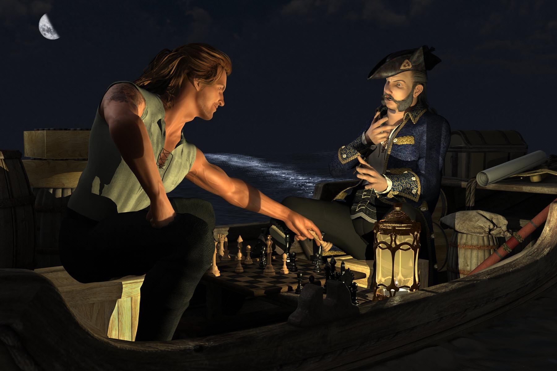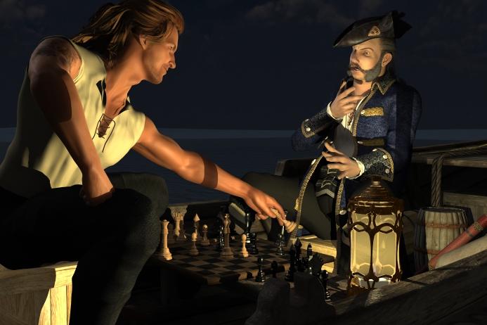 (1) I moved the lamp from the center of the bench towards the Sailor. This improved the lighting on the chess pieces.