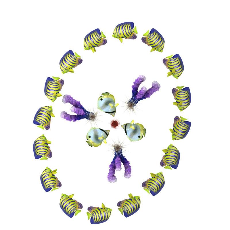 For the Angelfish, I posed the first one, then positioned them in a curve then saved it as a set.