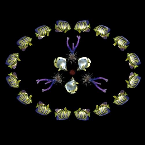 I made another set with the butterflyfish. I knew I would have to rotate this one and the darn fish were giving me fits. The axis of their rotation was above them, as though they were parented to something. I asked some questions and people were talking about editing nodes [... that was about the time my head started to swim, and though I appreciate people’s suggestions, it was more work than I wanted to do]. There comes a point when you reach the "oh heck with it" moment and look instead for a quick and dirty solution.