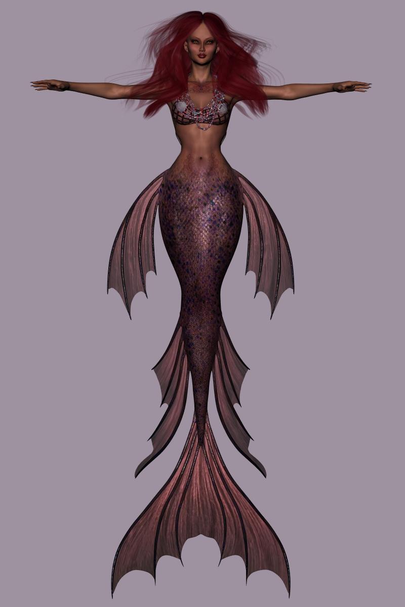 When I was finished, I renamed "Genesis 2" to a unique name for each one, based on the colors of the tails: Opal, Beryl, Crysocolla, Jasper, Labradorite... and... well, Lorelei Mertail plus textures only equaled five, and I needed six. So I took Opal and colored both the tail and the Woman red for Ruby.