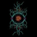 I wanted to add the background in Photoshop, so I brought in the render as Layer 01 instead of Background. I made a dot over the central urchin, and then used that to create a blue circular gradient over a black background. I wanted something that resembled the ocean but then was close to black which was simple and made the characters and motifs stand out.