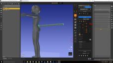 Grow hair on the other three shavegroups.  When you select another shavegroup, the hair guides that you’ve already grown turn blue.  Select shavegroup#2 from the drop-down menu.  While none of the follicles look red, our shavegroup is there.  Select 3 for the hair length and 6 for the points again and push the button to grow hair.  The arms now have green hair guides which indicate they are the group currently being worked on.  The hair guides for the body are blue.