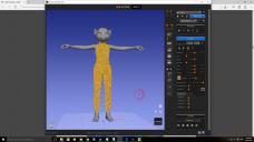 Groom the hair.  In our case, we want all of the of the hair in shavegroup #1 to head in a downward direction. We could just click on the brush tool (looks like a comb) and start combing all of the hairs.  Believe it or not, that is what I did before I figured out the easy way to do this.  In the Styling box are all of your d-formers which help to style the hair.  The first is called spherize.  It has a slider tool and x y z option.  The default is y which will cause the hair to go in a downward direction.  This is what we want for the hair in shavegroup#1.  So, I’ll move the slider to the right until the hair on JS hangs down close to her body.  You may have to move the slider to the right several times until you get the hair to hang just right.  Get as close as you can.  Anything else can be fine tuned with the brush tool.  If you move the slider to the left, the hair will look as if it is growing upwards.  This would be good if you were doing a hairstyle where you want the hair to defy gravity.