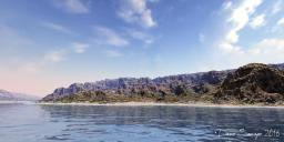 Another triple stacked terrain from our Hi-Res Terrains set 1. The sky is an HDRI but not a photographed one. I took the Bryce default terrain and rendered it as distant mask, faked it into a true HDRI, then cheated to make it a spherical panorama. It lights the scene and gives the clouds, the sun enhances the light and adds the shadows. To brighten up some black spots ignored by the HDRI and sun light, a dome light was added. The lake has a radial under water with ssquare falloff and just above it another radial with the inverted Bollard IES mask from David. The dome light has 256 lights, the HDRI quality 128, the sun soft shadows, rendering premium with 16 rpp and normal priority only took 15 minutes in this size.