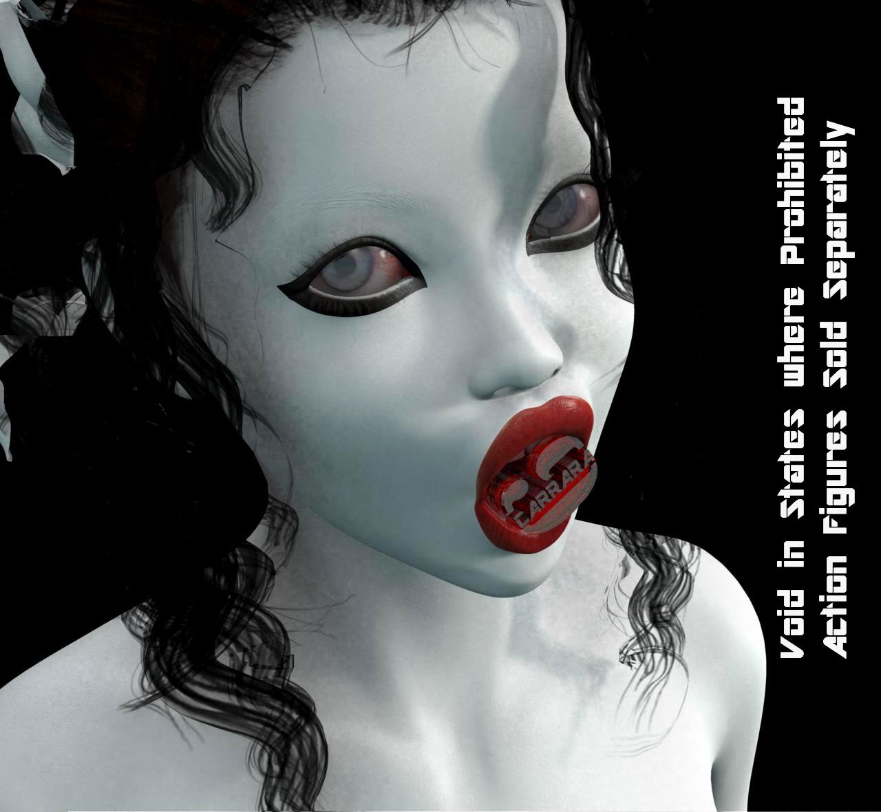 For the Genesis 2 Female, I removed the color texture maps for everything except the eyes, lips and inner mouth (including teeth, etc.,) replaced with a value of 100, while placing the proper Spec and bump maps into place. For the eyeliner I took her into the model room and selected those polygons and made a new material zone, to which I changed the color value from 100 to 0.