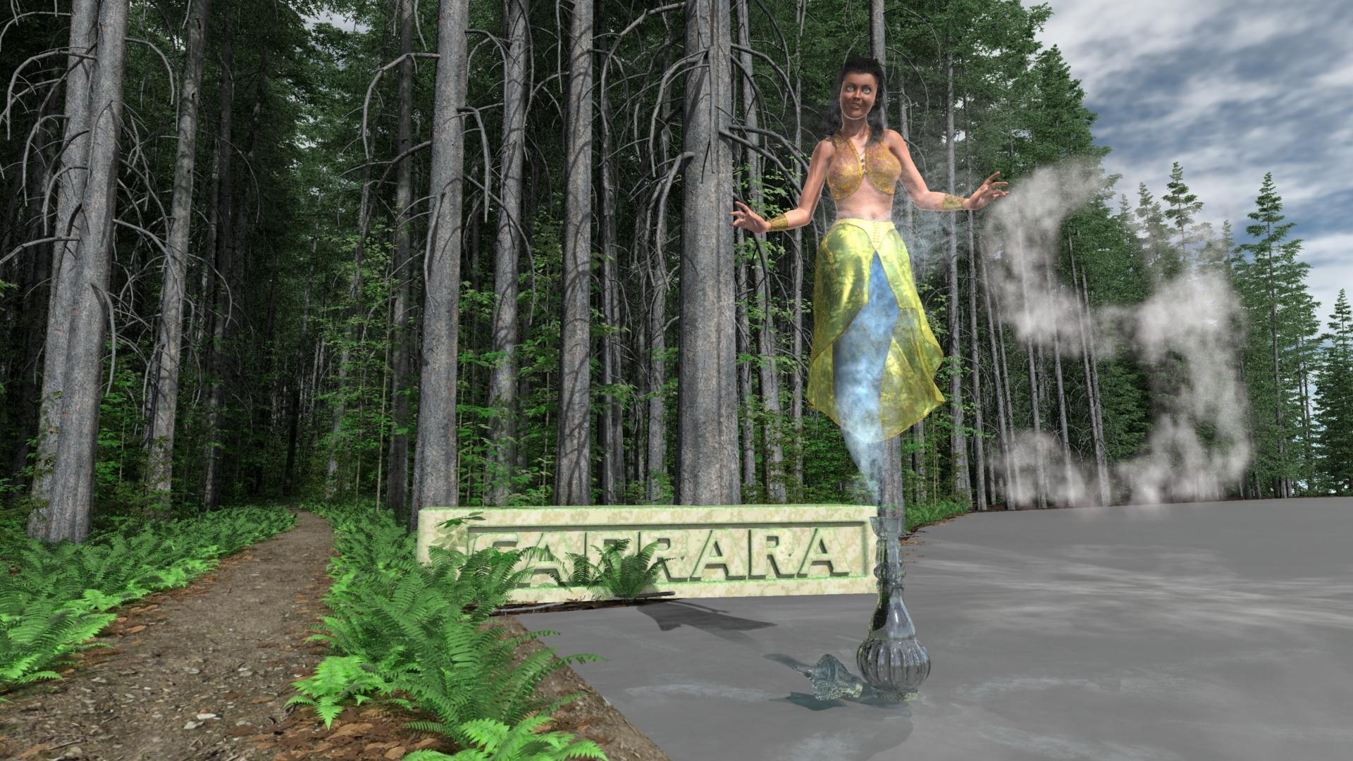 I have to give a shout out to Varsel and the cloud-9. Very creative. And then Dart posts another intimidating adventure render. Seems like a keeper to me. Lots of directions to take it. Misty, I seem to recall a challenge in which Jonstark had a moving cloak or something similar. If I were you, I'd use the cool dynamic reflective carrara 9 as the start of one of the three entries . It is up to Headwax this month if we can have movement. Worth finding out. Phil, I got your nine right here (and I make a gesture - towards my update). Great use of the greebles.