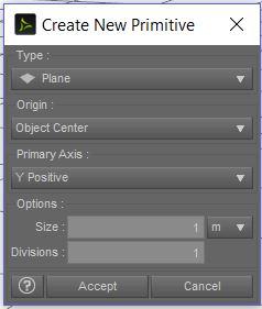 Then, create a plane from the primitives. I made mine 1x1m. Make sure that the number of divisions is set to 1 only, as more divisions will increase the render time.
