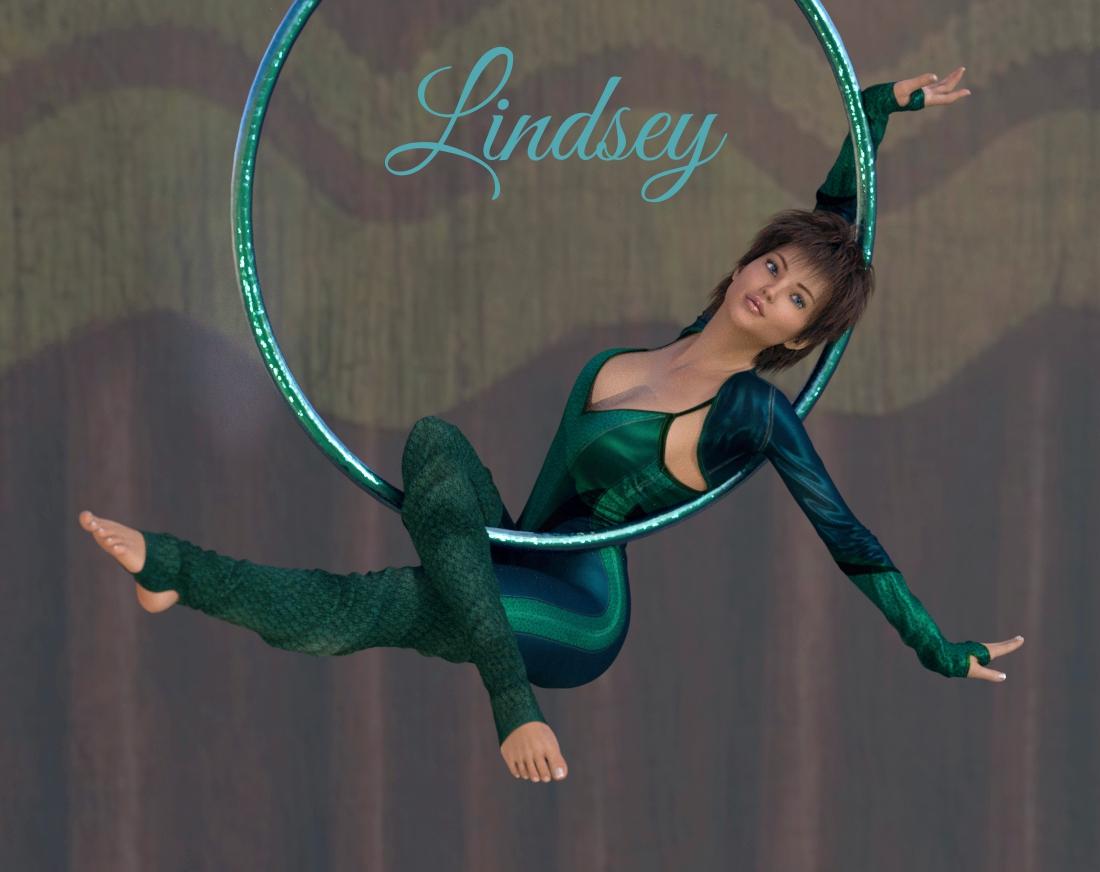 Here's Lindsey. I really like Vidra Hair!  LOL,  I don't like the Aerial Suspended Instant Poses under "Suspended" in Poses, instead of Aerial. Please name the files what the product is!  (And this pose is tweaked.)  The Carnival Bigtop interior has a nice backdrop for trapeze/hoop activities.