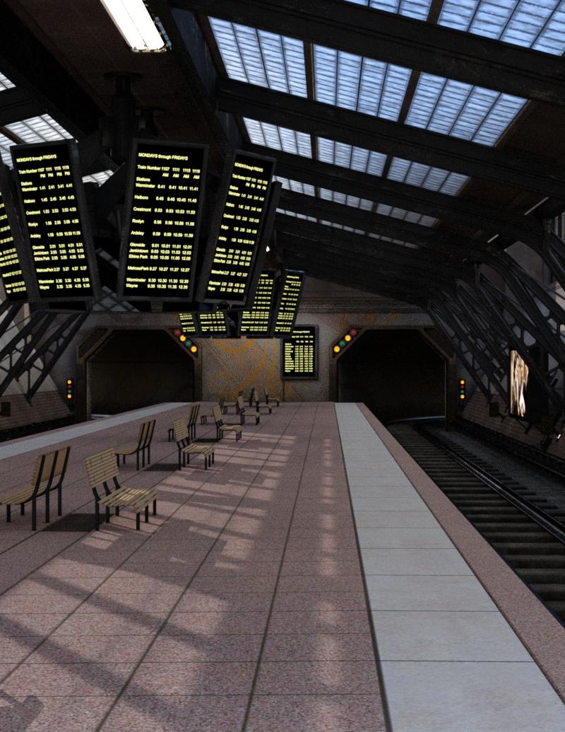 It's an older product, but here's a render of Neo Station, retextured (slightly) for Iray.   Monitors and signs are emissive, to get more of a modern LED signage effect.  A straight Uber Iray conversion left the floors and walls looking like polished granite and way too slippery for a train station floor.  Modified with MEC4D's concrete texture and added back in the original diffuse and bump maps.   I really ought to redo the benches, but that will involve more work with the Geometry Editor than I'm willing to spend right now.