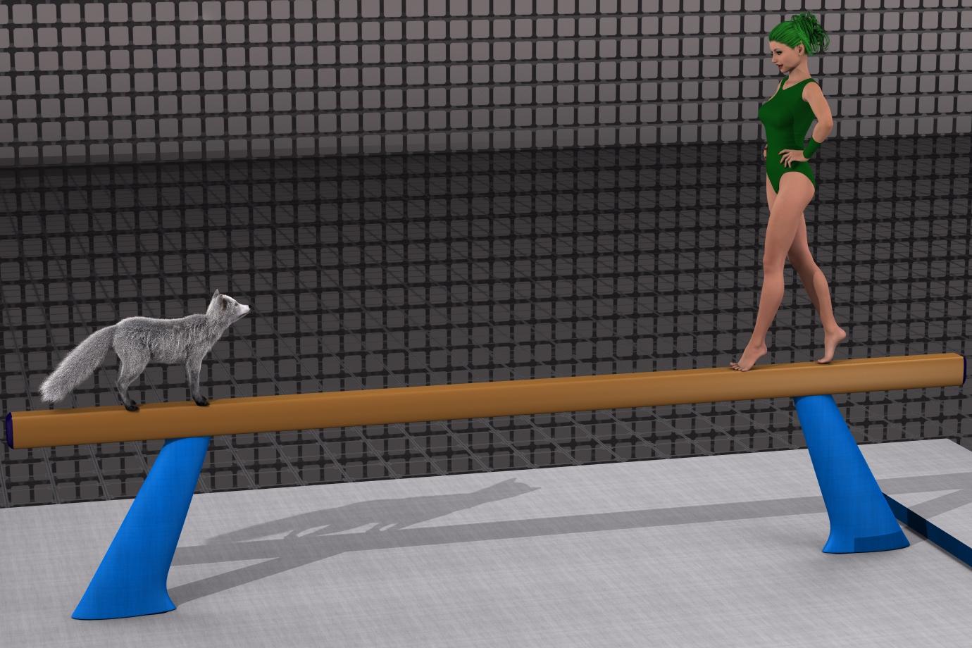 There are pet foxes here in Russia and other Slavic countries, I think you can see them walk over beam-like stuff at home, not sure about sitting...