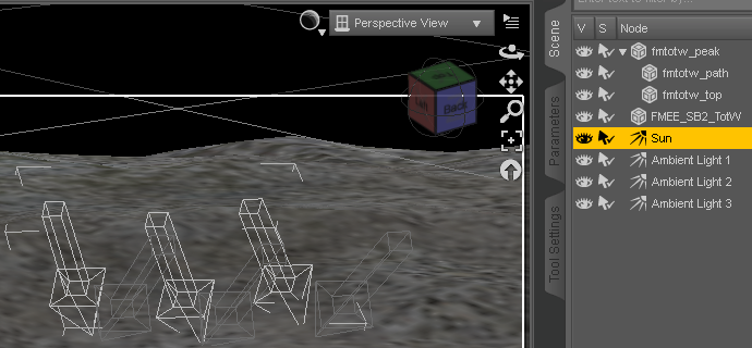 OK, slight tangent. Some one asked somewhere how to illuminate a large scene. Seeing as I was fussing with a similar thing in my test chamber, indoors is a crude and simple answer, Many lights.