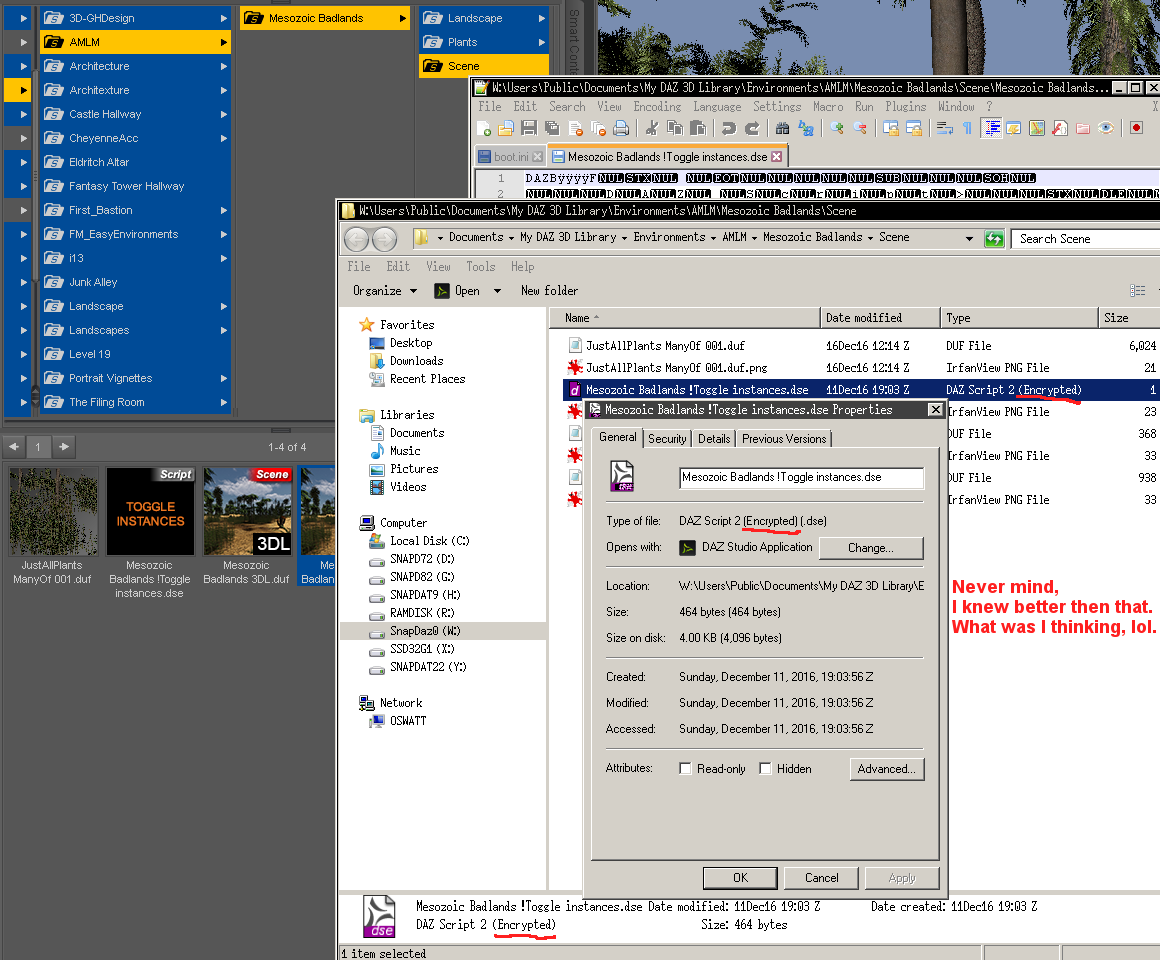 Slightly off topic, tho I guess here is best to post a Q for Alessandro_AM regarding the badlands set.  on 2016-12-12 - Added tool for toggling instances on and off. I found the dse in the Content library, tho it appears to only kick a "It failed to work" useless error, regardless of what I have selected in the scene tab. Is that for Iray, or am I doing something wrong?