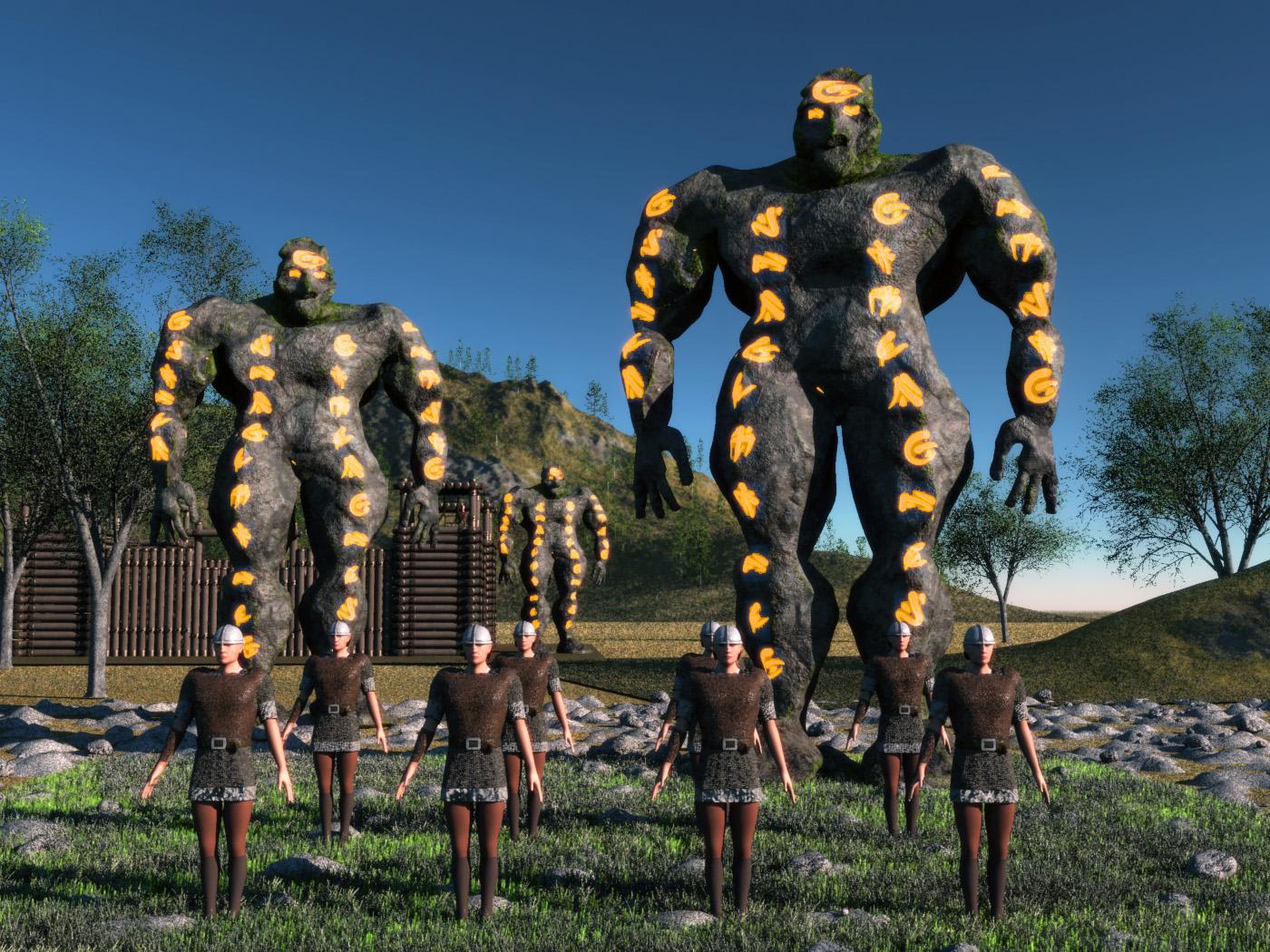 So I started on my second entry until I come up with something for the first one.  I made a rock elemental to fight my lorenzo lorez guards and starting putting in the pieces for a scene.  A couple things are still floating in the air and I need to rig my elemental so I can pose them, then array my guard unit against them.