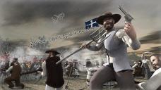 Used replicators to create the stockade ( the barrier between the miners & the police. Posed lorenzo several times and exported as objects then reimported into the replicators for the miners & police. Used splats for some smoke & fire, a lot of retexturing of clothing..made the wooden barrels and the Eureka Southern Cross Flag.