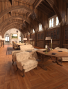This first render is without any ghost lights. The only light is provided by the Iray dome through the upper windows. I let it go to 48% convergence which took 1 hr 5 min. As you can see, it's a quite dark interior with most details hard to discern, even though the windows imply a bright sunny day outside.