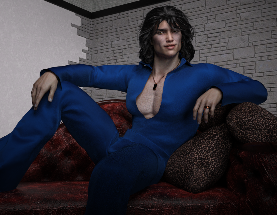 Ok, couple of quickie renders of my G2M illusionist, Hugh, in the powder blue, beaded eagle version of the Elvis suit. He's a tweaked out Sebastian for M6. He's a bit old fashioned and very British. Took some convincing to get him into an Elvis suit. He wasn't that into it at first, but started to loosen up when I gave him a microphone. (Note: he's not old, he's had white hair since birth. He uses his illusion powers to hide it.) I have Valheimer's G3M for G2M clone. It's very handy for fitting the G3 clothes and hair onto the G2's. I haven't run into an outfit it couldn't autofit yet.