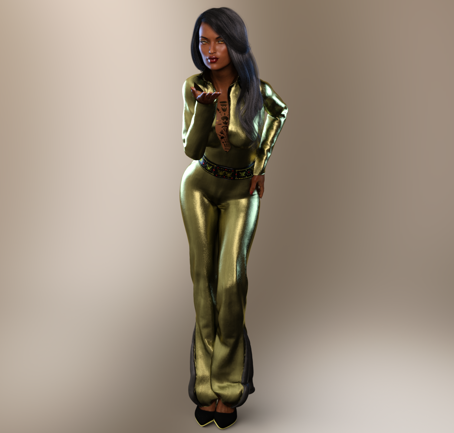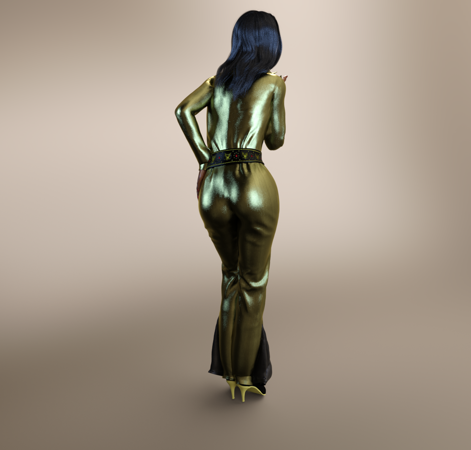 Finally got around to putting the Elvis suit on a G3F and using DG's wonderful Bling It! shaders. The surfaces are very easy to reshade. I kept the beaded belt, I liked how it looked with the gold. I also kept the pleats in there at the bottom, but there may be a way to turn them off. I'll check.