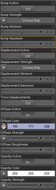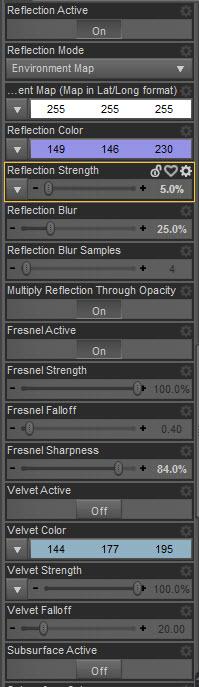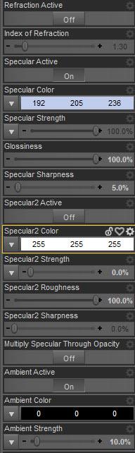 Question: I thought Glossiness responded in the opposite direction, with higher gloss for the lower numbers. That's why I set it to 100, thinking that this would turn it off. Please correct me if I am wrong.