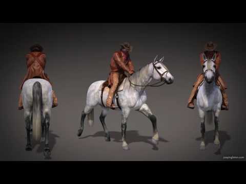 This is another quick experiment with Don Albert's "Walking, Trotting, Cantering, Galloping, and Jumping Actions Bundle". I converted the cantering poses into an aniblock and applied it to "DAZ Horse 2". Then I added a rider and parented him to the horse. This time instead of using the Animate 2 Constraints to follow the bridle, I used null objects as targets for the limbs to point at the bridle and stirrups. Then I rendered the animation cycle from the side, 3/4 view, front and back.
