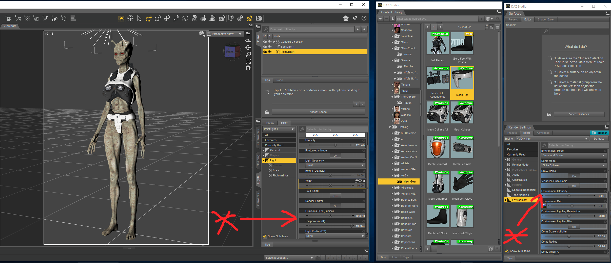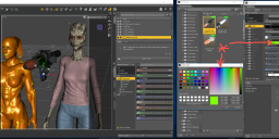 Ice Dragon Art - thank you, that was super helpful, really.  One of the biggest hurdles of using an unfamilar program is just knowing what a typical workflow is.  It really does help to hear what you have a shortcut for, versus what you just slog through.  Next time the shader domain issue comes up, I will see if the bridge to Hexagon can be used to find them.  Meanwhile, I will make a few fitting morphs for the helmet.  I had gotten spoiled having all the tools in one program and then making small adjustments on the fly.  Will have to plan accessories, etc. more carefully for Studio projects.