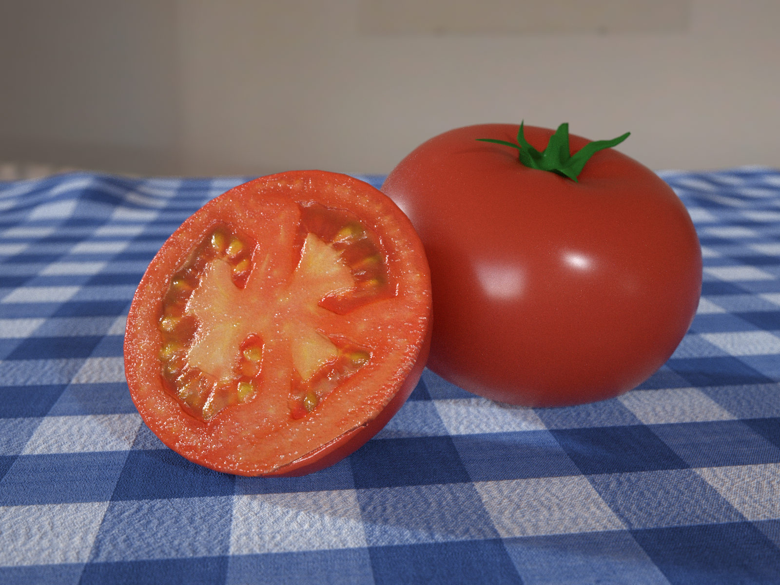 Inspired by this challenge and as a little light relief from other stuff I am doing, I thought I would put together a simple tomato scene. The idea is to make it (ultimately) as realistic as I can do it - and it clearly isn't there yet, but the pieces are in place, all modelled in Carrara. Not sure if this will be an entry as it is so simple and unimaginative (compared to everyone else) but I'm having fun doing it. I'll probably end up rendering in Octane as I want to use SSS, but this for now is a Carrara render (with blurry reflections on the complete tomato!). I think it is going to succeed (or not) on the basis of the cut tomato surface, and the maps are pretty flat looking at the moment.