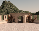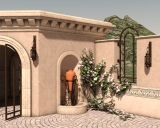 I really like this set and it renders well in Iray "out-of-the-box." While they are three separate products, Tangien Courtyard combines all but the grounds of Tangien Portico and Tangien Corner into a large courtyard with a corner on either side of the portico. I bought the courtyard first, then later got the portico on sale for the textures. Not exactly sure when I got the corner, but I did because the buildings of the courtyard are one object. I wanted to be able to use just the corner. Anyway...