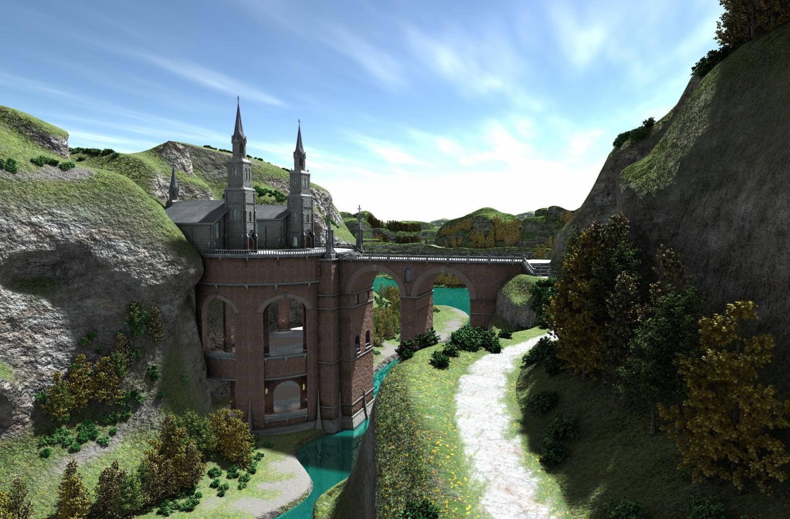 Gamma 2.2 question.  How do you align the lighting if you insert a render in the background and then use lighting gamma 2.2?  The background gets washed out.  I tried to put an updated version of the previous render in the backdrop with a small terrain and foreground tree.  Here are two renders, one with gama correction 2.2 and one without.  I like the foreground tree and terrain with gamma 2.2 but not the render in the backdrop.  I'm sure it is covered in one of PhilW's videos but I don't remember.  Could always try to address in a composite, but I suspect there is a simpler way.