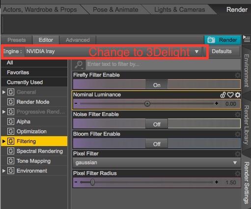 How do I turn off Iray and render in 3Delight?