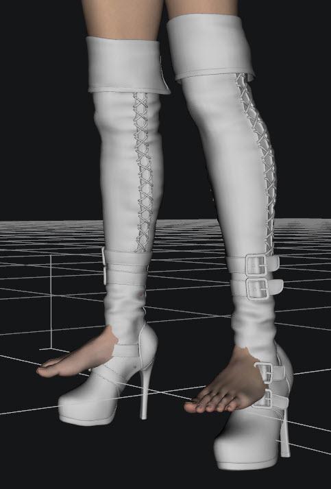 13. Go to My Library, Figures, select your file and load it. You will see that it loads and fits V8 with no toe poke through. If you hide the boot, you will see V8's missing foot.
