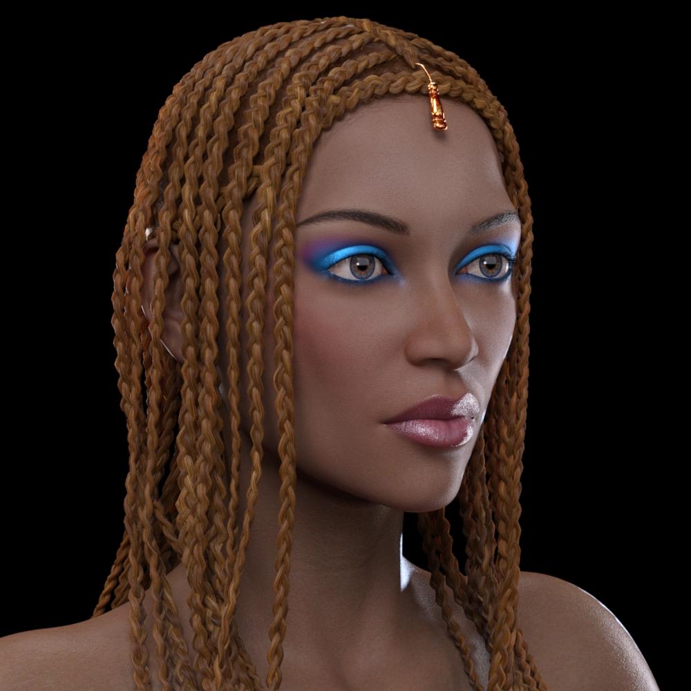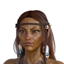 Here's the new one with G8 done in Iray: I was finally able to do the double brows with the new G8 mesh eyebrows, something I wasn't able to do before. I really like how it turned out. This is Elleth Hair recolored in UHT2. I replaced the charm on the headband with the Raven Necklace. A bird skull hanging from the headband really makes that tribal look.