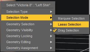 4. Right click on one of V8's legs. In the menu, choose Selection Mode, Lasso Selection.