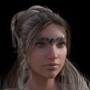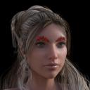 While I liked her lips, I didn't like the gold color pulled out of the skin, and the dramatic amber eyes turning brown.  So I decided to ditch the Anagenesis version and play around with the settings to reduce the gloss.  I like this version: