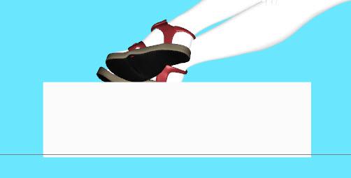 f. In this example, we move the girl further into the stool.  Now you see more surface interaction then above, but you also see that the extended leg does not depress the edge of the stool as you might expect; instead, it’s like the leg cuts into the edge.
