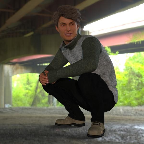 - V4 Bootz ( https://www.renderosity.com/mod/bcs/the-bootz/56317/ ): Conformed to M4. His feet and toes poked through so I simply made them invisible.