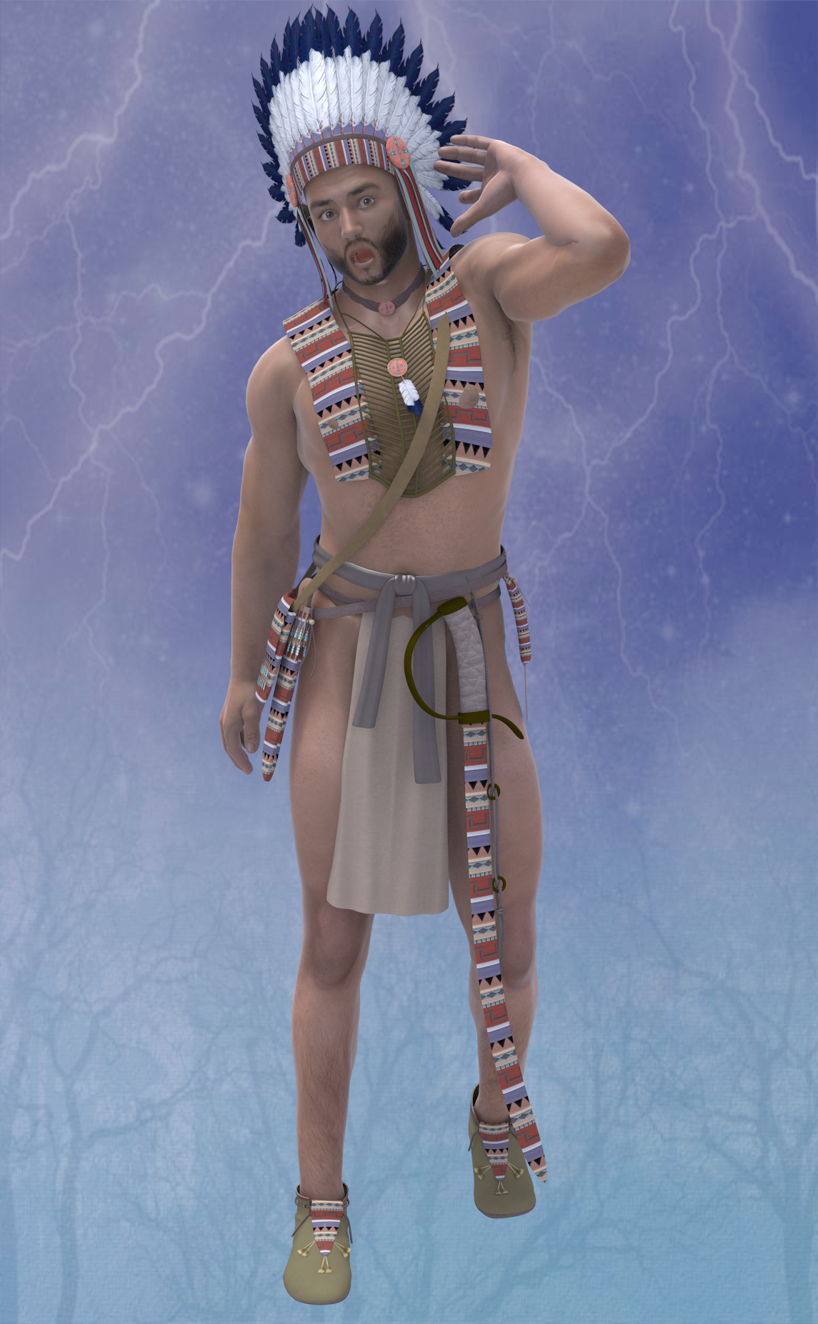 M4 is in a simple pose at the world origin to make it simple to 'fit' things. After 'fitting' the skirt and vest I made some further adjustments to his pose and morphs to improve the look of the 'fit', and went through a couple of iterations - adjust clothing, adjust pose/morph,repeat. If you look carefully you can see the bottom of his right shin is sticking out of the side of the boot, but due to the floor tiles behind you don't really notice. Except if I tell you.