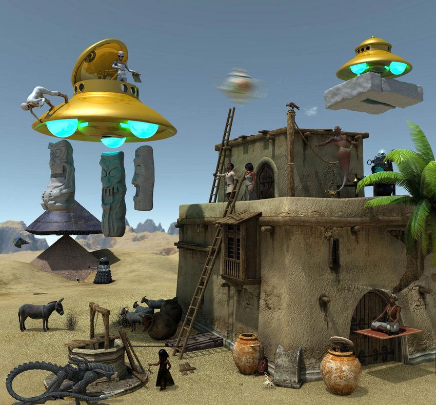 Along the same lines (but unsuitable-for-DAZ due to nudity) I did a follow-on to a render in my ShareCG gallery. The original, entitled "Late", imagined what fate would have befallen Andromeda if Perseus had had a smartphone. The follow-on, entitled "Tentacles", replaced Vicky-Andromeda with a very surprised Freak and a painful twist.