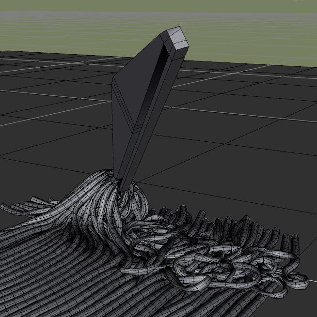 this behavior. By the end of the simulation, the mop strings are all on the ground and have escaped the clasp completely!