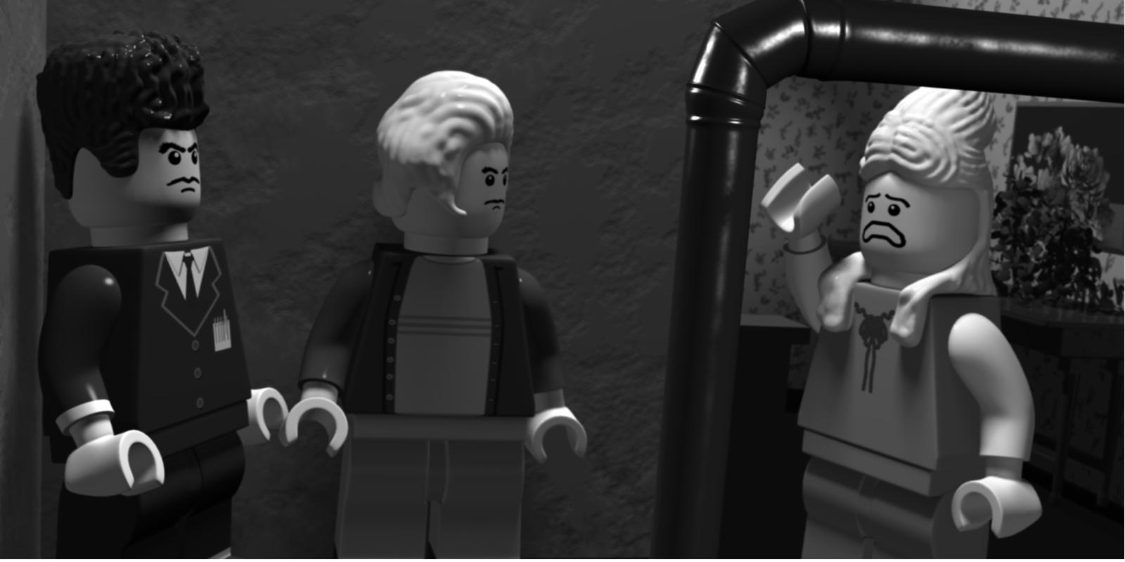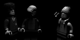My main problem was too many specular hits on the shiny figures from so many bounce lights. To solve this I rendered an image of the figures solo (turned the pipe into a black mask becasue Mary X's hair was being slightly cut off) with the main spot light above along with a Specular pass using Carrara's multi pass rendering. I then rendered the whole scene as normal, but turned off Highlight and Shininess for all the textures for the Lego figures. I then added the Specular pass in post with a minor Curves filter adjustment. That is the only post work I did.