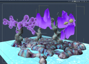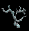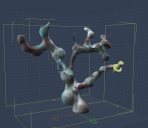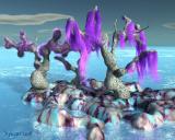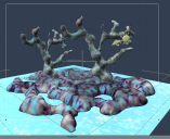 I called it “Bone-Tree Planet”. I used hair on my metaball trees instead of leaves. The terrain is also metaball creation converted to vertex object with some geometry cleaning. Procedural shaders were used on both. Carrara native render.